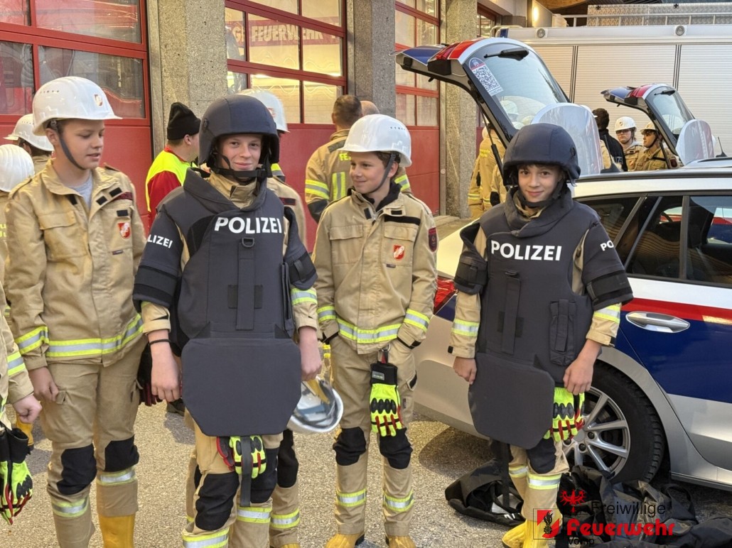 Auch unsere Jugendfeuerwehr war aktiv: Ein besonderer Höhepunkt war der Besuch der Polizei, die unseren jungen Kameradinnen und Kameraden spannende Einblicke in ihre Arbeit bot. Es wurden Einsatzbekleidungen getestet, Polizeifahrzeuge besichtigt und verschiedenste Gerätschaften vorgestellt – eine tolle Gelegenheit für unseren Nachwuchs!