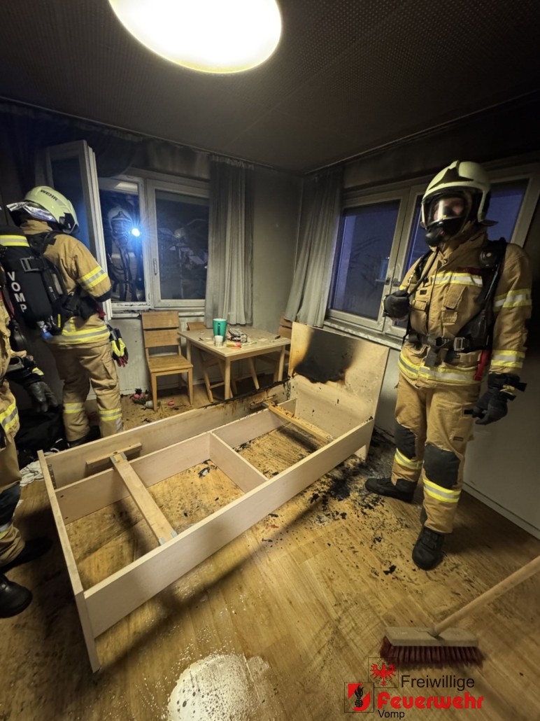 In der Nacht vom 11. auf den 12. November heulten gegen 2:30 Uhr die Sirenen der Feuerwehr Vomp auf. Der Alarm wurde mit dem Stichwort „Brand Sonderbau Zimmer“ ausgelöst.