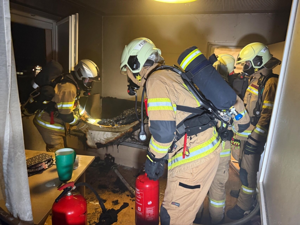Dank des schnellen Eingreifens der zuerst eintreffenden Einsatzkräfte konnte eine Ausbreitung des Brandes auf weitere Räume verhindert und das Feuer rasch gelöscht werden. Im Anschluss wurden Abluftöffnungen geschaffen, um die giftigen Rauchgase mithilfe von Druckbelüftern aus der Wohnung zu treiben. Mehrere Atemschutztrupps brachten kurz darauf den Brandschutt ins Freie und kontrollierten die Räumlichkeiten auf verbliebene Glutnester.
